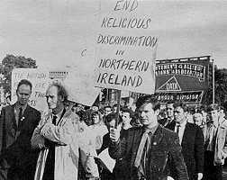 The Northern Ireland Civil Rights Association (NICRA), founded in 1967, claimed it would not favor the Catholics nor the Protestants. NICRA was inspired by the methods of Dr. King and other U.S. civil rights activists who used their constitutional right to demand change without instigating violence. This influenced the group to help Catholics in need, thereby lowering the Protestant control, causing Northern Ireland to separate from England peacefully.